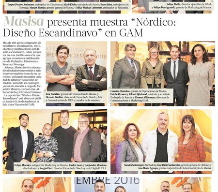 La exposición Nórdico: diseño escandinavo es presentada por Masisa y GAM y patrocinada por las embajadas de Suecia, Finlandia, Dinamarca y Noruega.