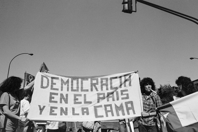 La selección está compuesta por 60 fotografías que dejan al descubierto un potente repertorio de formas de resistencia y organización. La multiplicidad de gestos y voces del movimiento amplio de mujeres de los 80 se despliega y expande hacia el presente, tomando contacto con el Chile de hoy y la continuidad de una lucha por la transformación radical a favor de una cultura de derechos y contra todo tipo de golpe.