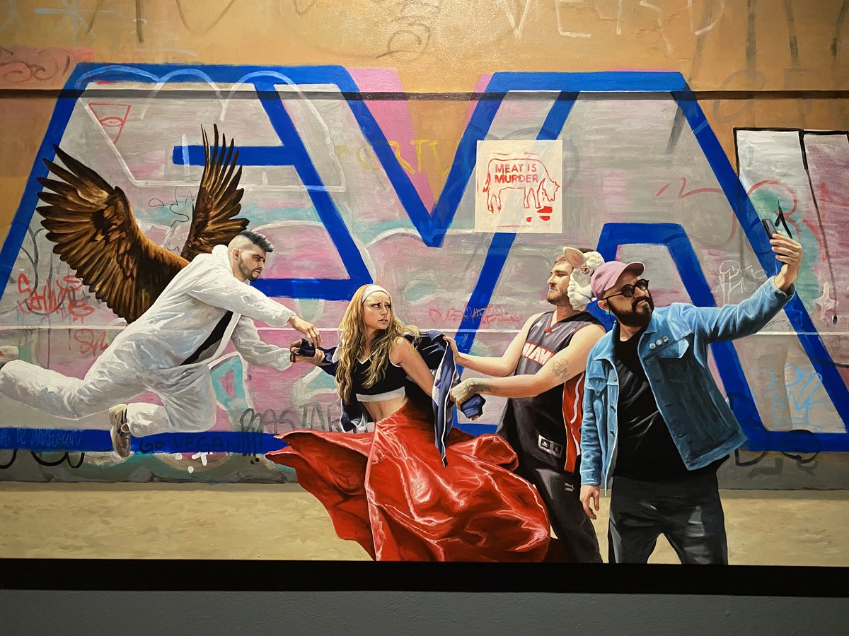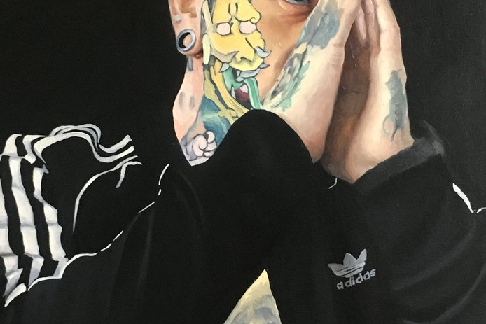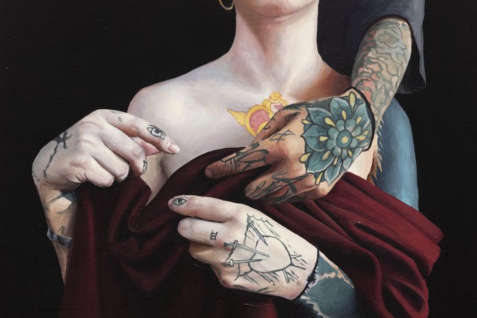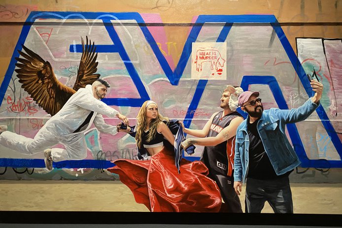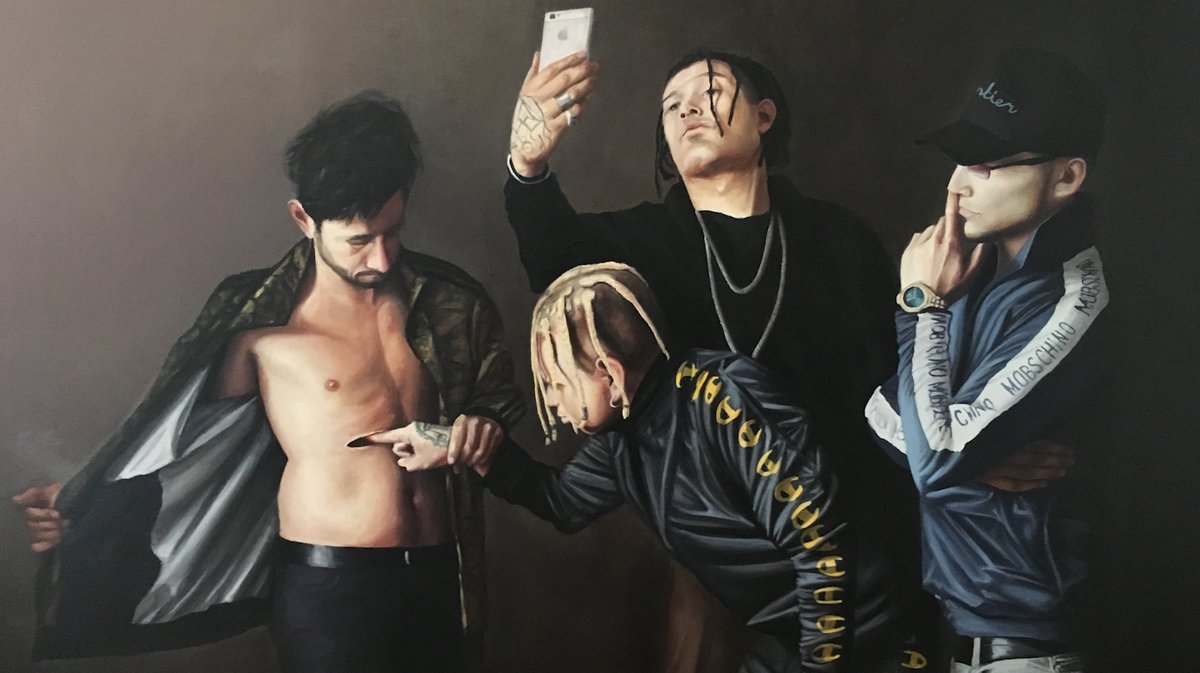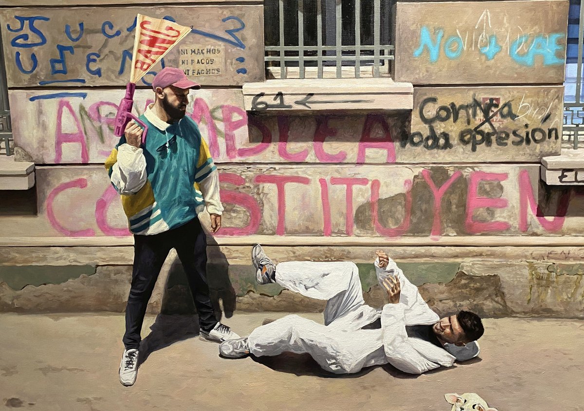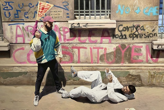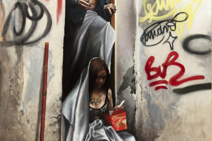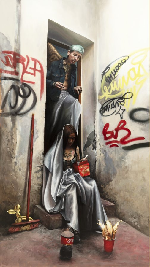 El artista chileno Raúl Pizarro presenta pinturas realistas que une la cultura urbana con el barroco.