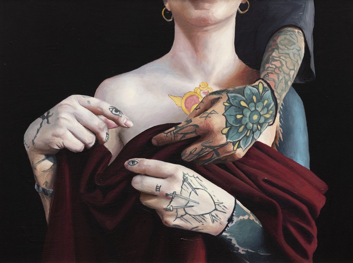 En sus cuadros se ven imágenes de personas reales, imperfectas, tentadas, diferentes y especiales, que se les ofrecen puestos en el arte superior, como un ejercicio de resignificación histórica en nuestra era moderna.