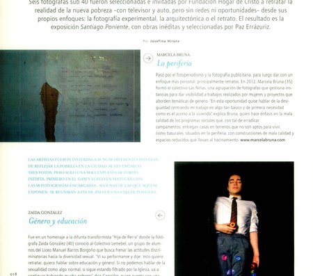 Reflejar “la nueva pobreza”, fue la propuesta que aceptaron las fotógrafas chilenas Bernardita Bennett, Marcela Bruna, Cecilia Coddou, Zaida González, Carla Mc-Kay y Carola Sepúlveda, jóvenes todas, pero con una obra visual reconocida.
