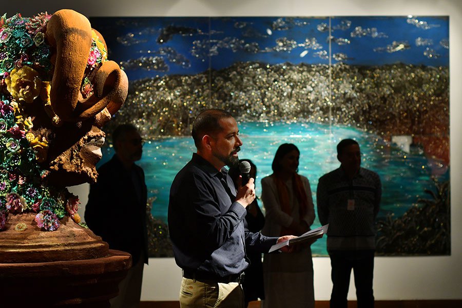 El sábado 7 de enero se realizará un conversatorio con el público en la misma sala de Artes Visuales de GAM. Participarán el artista Edouard Duval-Carrié; Juan Diego Galaz, jesuita y abogado director del Centro Universitario Ignaciano quien ha trabajado en materia de migraciones e intervenciones en asuntos migratorios y de refugio en Chile, Perú, Bolivia, Brasil y Colombia; y Beatriz Bustos Oyanedel, Asesora de Arte Cultura y Educación de FMA, curadora independiente de arte contemporáneo con experiencia de trabajo con diversos países de América Latina.