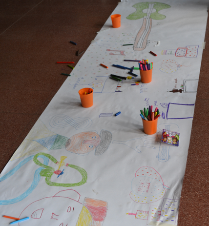 El proyecto -dirigido por Fundación Mar Adentro, en colaboración con la Universidad Alberto Hurtado- es fruto de un trabajo de talleres que realizaron 4 ilustradores chilenos con 31 niños y niñas haitianas de la comunidad de Estación Central durante diciembre. Los ilustradores con una destacada experiencia en metodologías participativas -Matías Prado, Tomás Olivos, Daniela William y Sebastián Ilabaca- compusieron el mural con el imaginario que los niños crearon en los talleres.