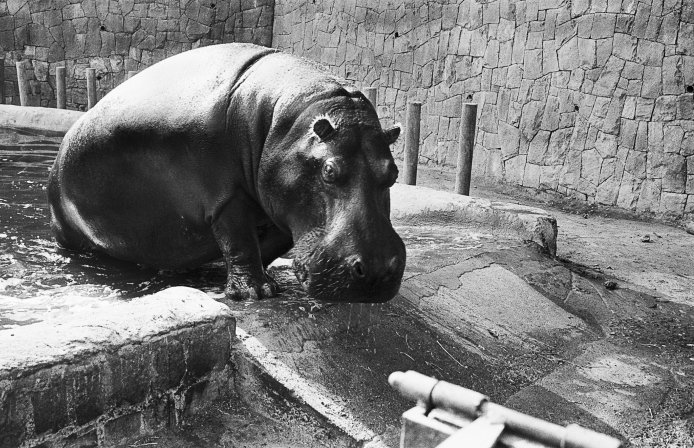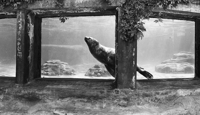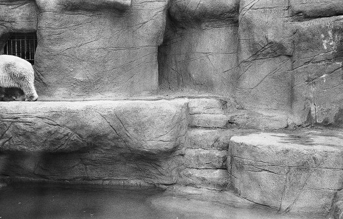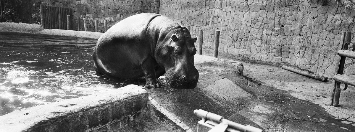 Los animales del Zoológico Nacional, la arquitectura que habitan, los paisajes que los rodean y la ciudad que se asoma en el horizonte fueron fotografiados durante dos años por Rosa. Todo analógico, en blanco y negro y gran formato, porque las fotografías expuestas miden entre 1 casi 4 metros de largo.