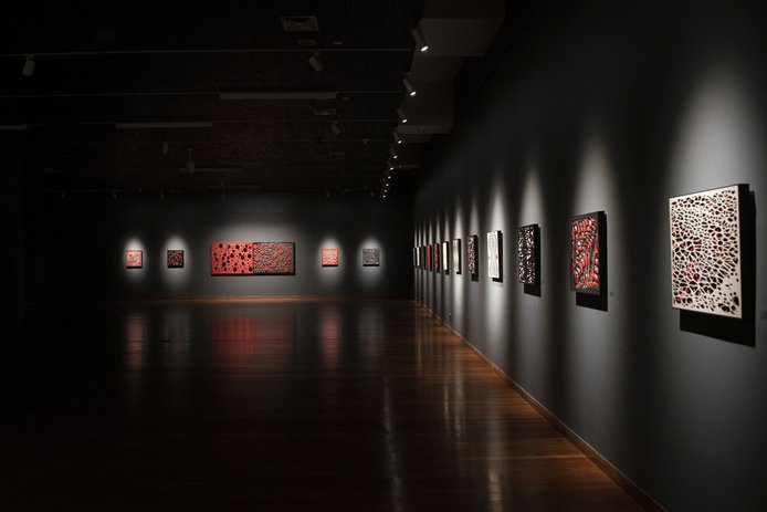 La exposición se compone con obras construidas en capas de madera de distintos espesores con distintos troqueles y perforaciones que finalmente suman a un todo armónico que completa la imagen. Donde la luz, la sombra y la posición del espectador hacen que la superficie sea dinámica y variable, como el mismo organismo. La obras se titulan “Hemostasia”, ya que es el nombre de la primera fase de la cicatrización, las cuales hacen alusión al proceso de recuperación de la experiencia vivida por la pandemia y la herida provocada en el cuerpo individual y social.