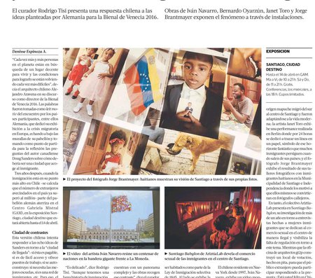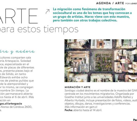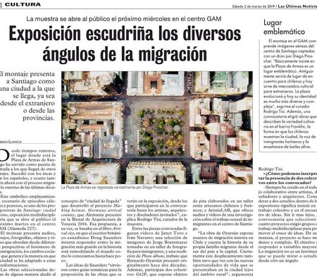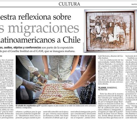 Una exposición sobre migración y ciudad. Fotografía, video, audio, objetos, dibujos, danza, investigaciones y conferencias se unen en esta muestra organizada por Goethe-Institut junto a las universidades Adolfo Ibáñez y Alberto Hurtado.