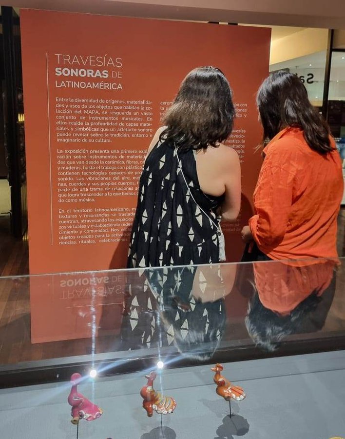 Por primera vez, la Sala MAPA exhibe instrumentos latinoamericanos, abordando la materialidad musical del continente, como vientos andinos, silbatos cerámicos de Centroamérica además de obras de maestros luthiers nacionales.