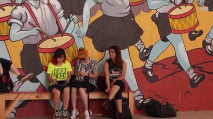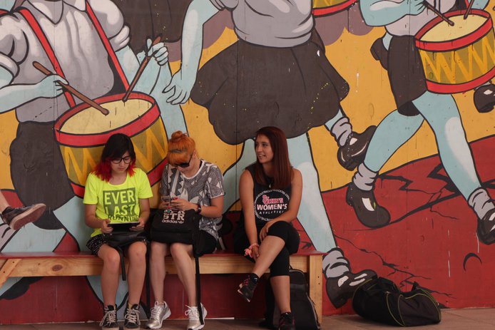 El artista chileno se centró en arte e intervención pública, según el espíritu de UNCTAD III. Con acrílicos en mano, Castillo es fiel a su estilo con referencias constantes al mundo del cómic y en especial al cartoon televisivo de su infancia.