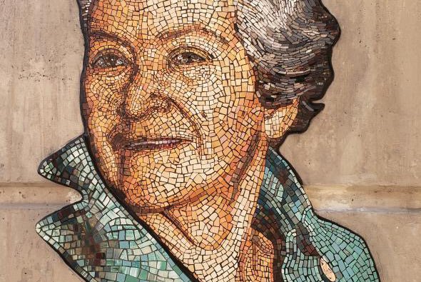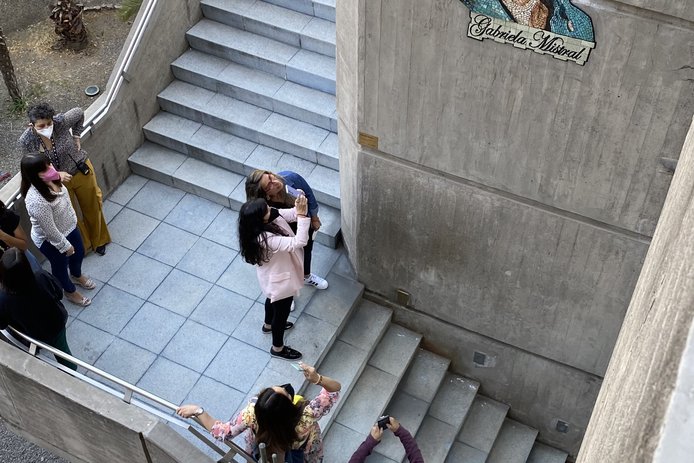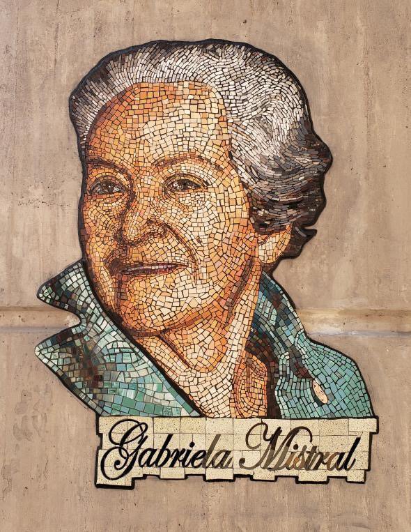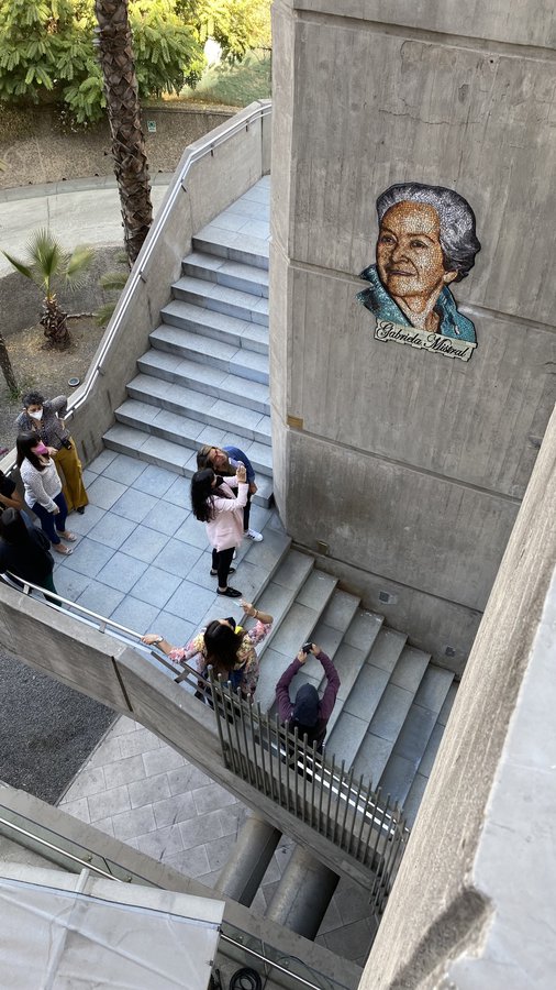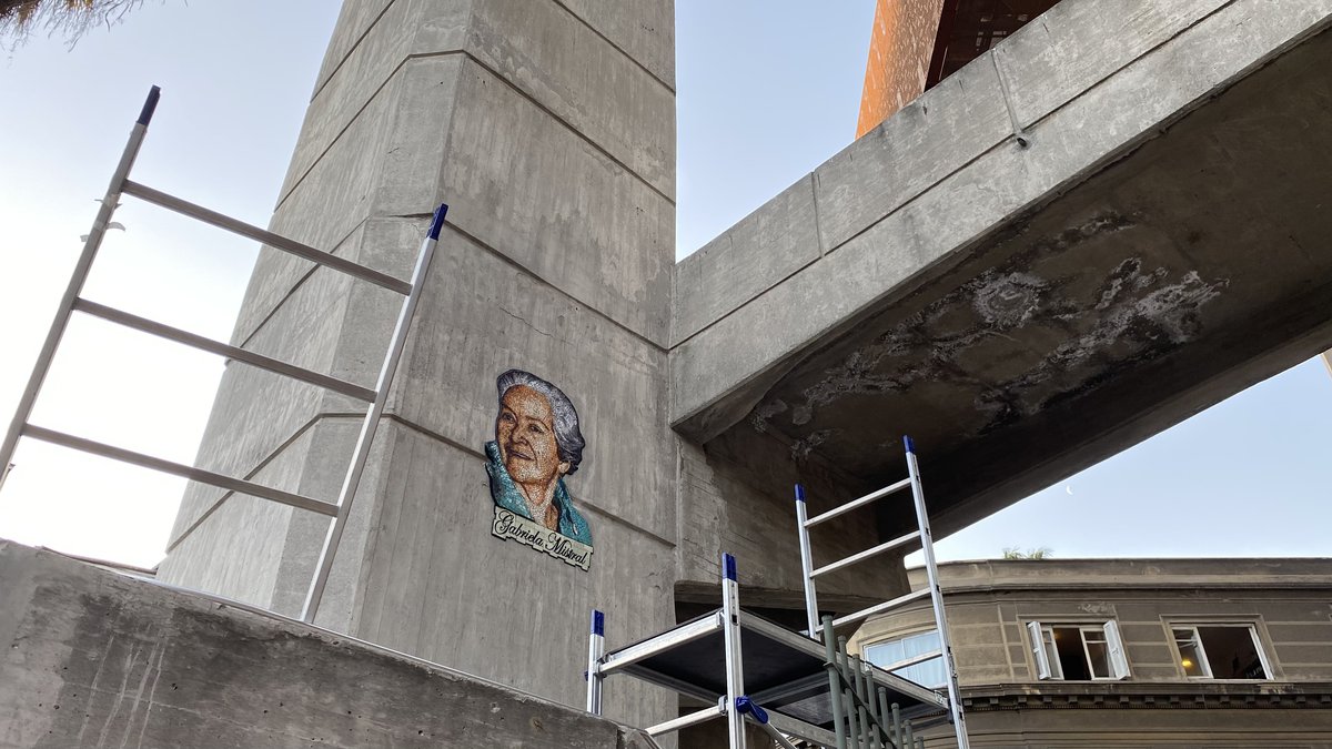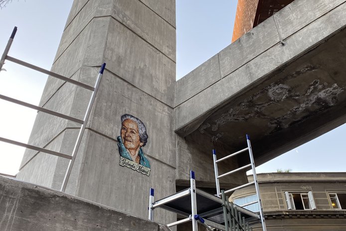 Mosaico de la artista antofagastina Nanda Yasoda que homenajea a la poetisa Gabriela Mistral. Con una nueva técnica de mosaico, la artista donó el rostro de la escritora a GAM en abril de 2022 en el aniversario del natalicio número 133 de la Premio Nobel.