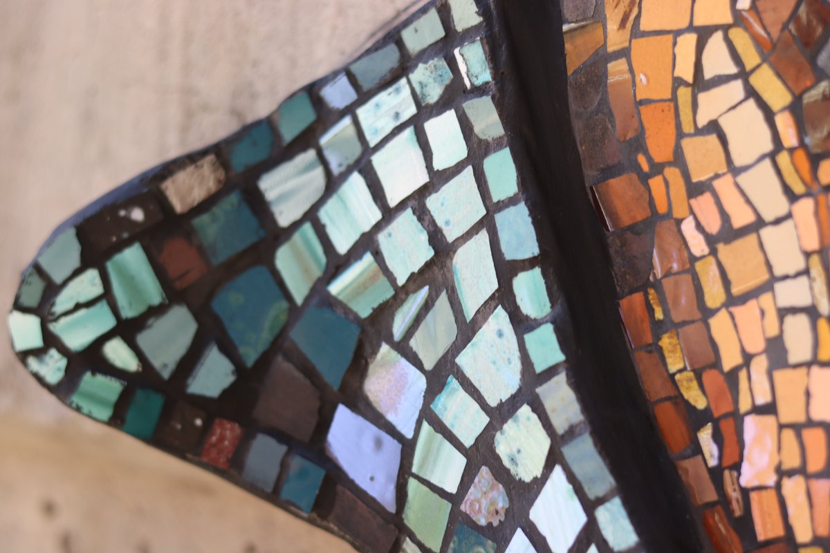 “Son cerámicas esmaltadas y horneadas a mil grados, yo hice la paleta de color y a diferencia de los otros rostros que hemos hecho hasta ahora, este se sale del plano, porque tiene una base cementicia que es ondulada. Eso es nuevo, no lo habíamos experimentado antes, es unir un poco lo moderno con lo contemporáneo.”