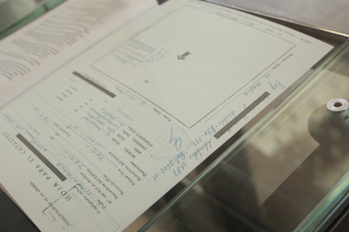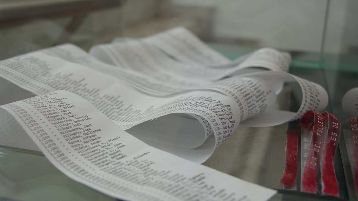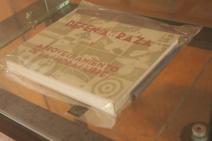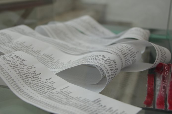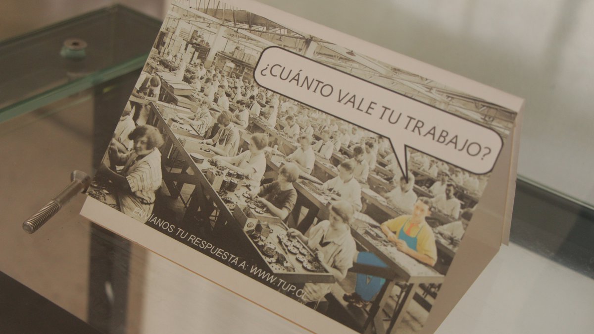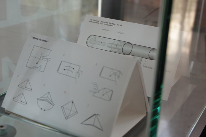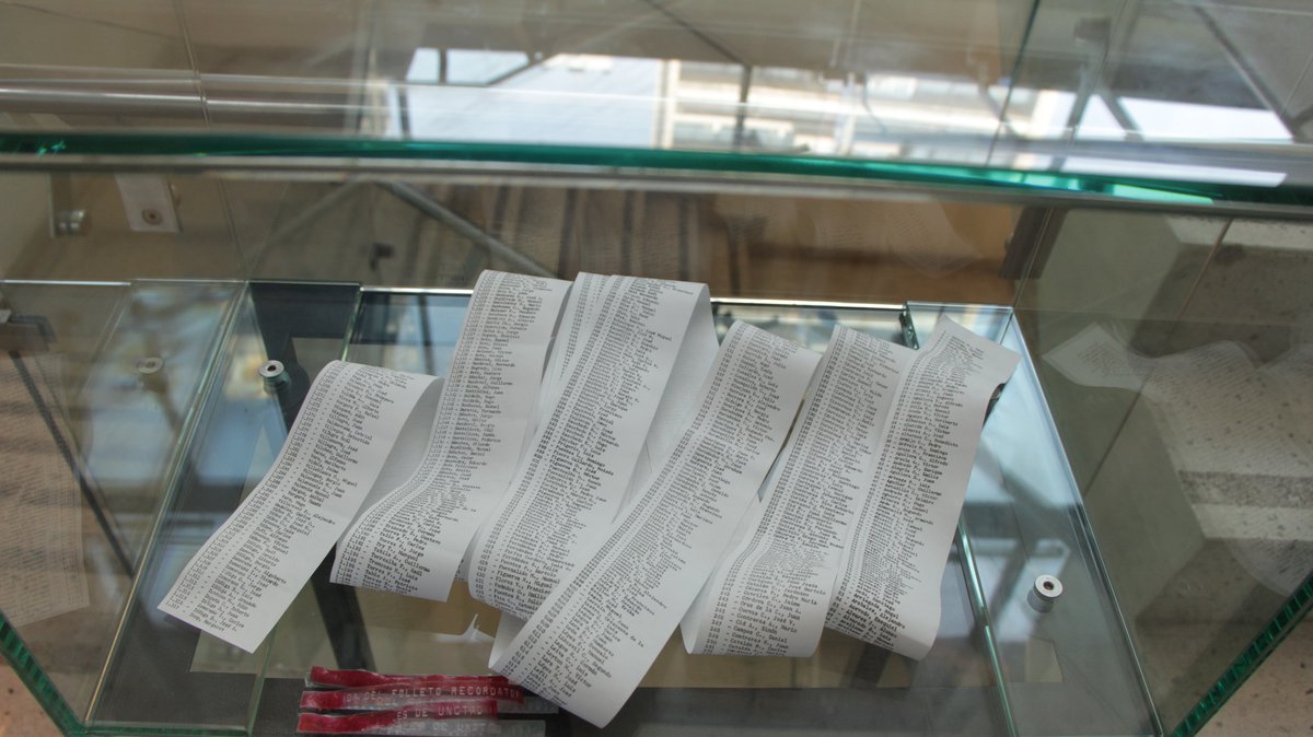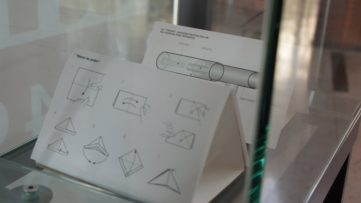 Once cajas de vidrio fijados con perfiles metálicos, con tarjetas que evocan imágenes y palabras de construcción común de un país que cotidianamente regenera su patrimonio cultural.