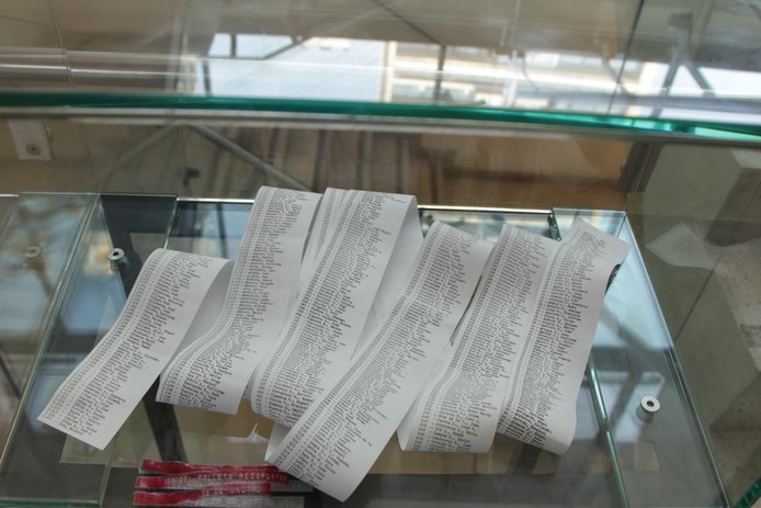 La obra se encuentra actualmente en el hall del Edificio B, entre Boletería e Informaciones.