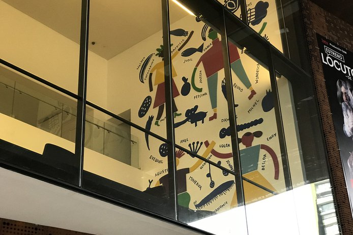 Niños y niñas de nacionalidad haitiana, junto a los destacados ilustradores chilenos Matías Prado, Tomás Olivos, Daniela William y Sebastián Ilabaca, exponen “Zanmi”, un mural que grafica el encuentro entre distintas culturas. El proyecto dirigido por Fundación Mar Adentro en colaboración con el Centro Universitario Ignaciano de la Universidad Alberto Hurtado, está en exhibición en el segundo piso de GAM.
