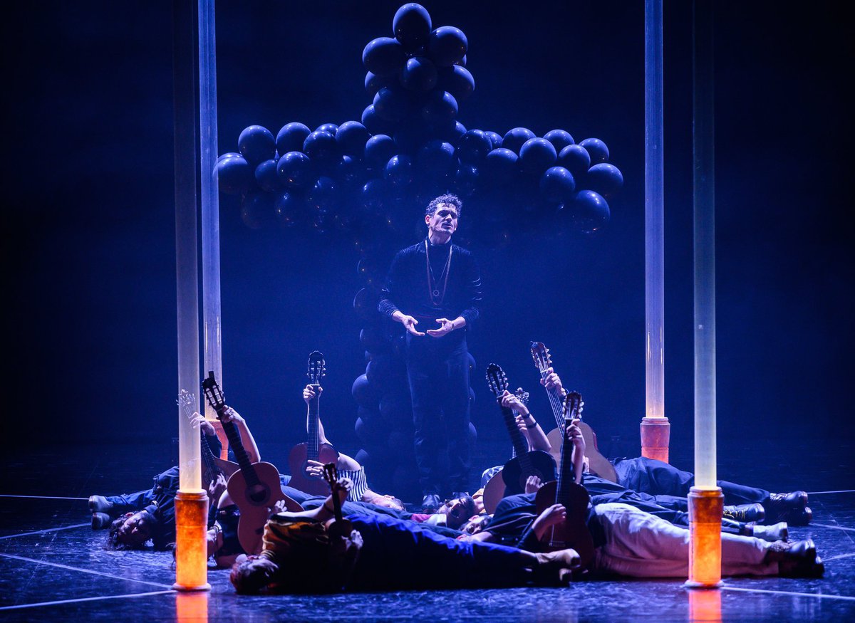 Jonas & Lander presentan una propuesta escénica con 5 bailarines, 4 musicos y un fadista, que se relacionan entre si mediante el cuerpo, el movimiento, el canto y la música. La puesta en escena se define por una cruz de globos negros, aludiendo a la iconografía tradicional, pero a la vez a la capacidad de transformación, de las culturas hispánicas.