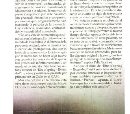 Al conmemorarse un centenario de su creación, tras haber sido montada por compañías de todo el mundo y como forma de rendirle homenaje, la coreógrafa nacional Nuri Gutés apuesta por presentar su personal versión de la crucial pieza como uno de los espectáculos más esperados del Festival Internacional de Danza Contemporánea ESCENA 1, que se desarrollará entre el 4 y 14 de julio en Matucana 100, Museo de la Memoria y Centro Gabriela Mistral.