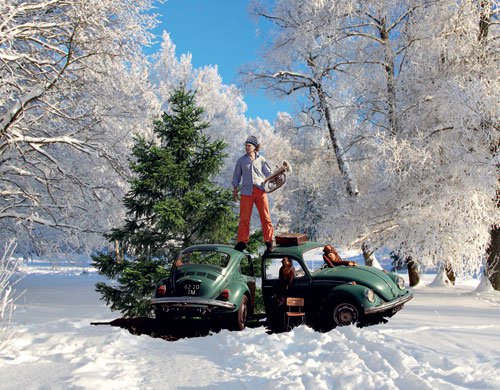 La acción transcurre en la casa de dos amigos que se preparan para la llegada del invierno. Cortan madera para la chimenea, hornean galletas, tejen un gorro de lana y recogen un árbol de navidad para la casa. Consiguen un árbol hermoso, pero la única pregunta es: ¿cómo entrarán el árbol a través de la puerta?