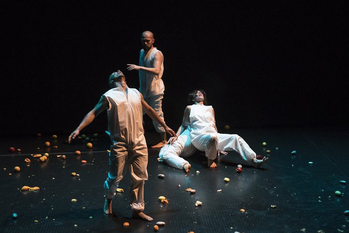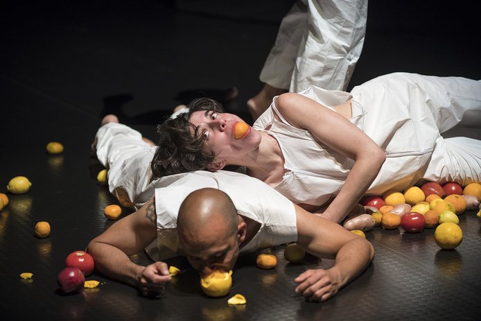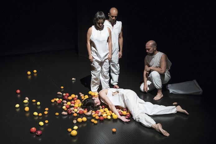 En escena, estas ideas se traducen en la continuidad de Bergson y en la repetición y el imaginario corporal de De Rokha. El resultado no tiene una secuencia de movimiento, sino que estructuras de improvisación que se desplegarán función a función. El poema no está presente de manera literal, aunque su canto es parte de la base del sonido, trabajado con voz y procesos electrónicos por José Miguel Candela.