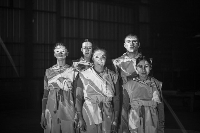 Una pieza escénica y transdisciplinaria que, mediante el movimiento urbano experimental, el diseño sonoro y nuevos medios tecnológicos, crea una experiencia inmersiva sensorial que despierta los sentidos del público.