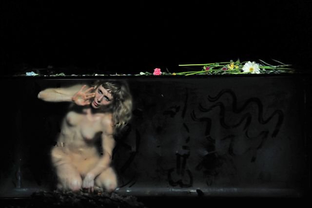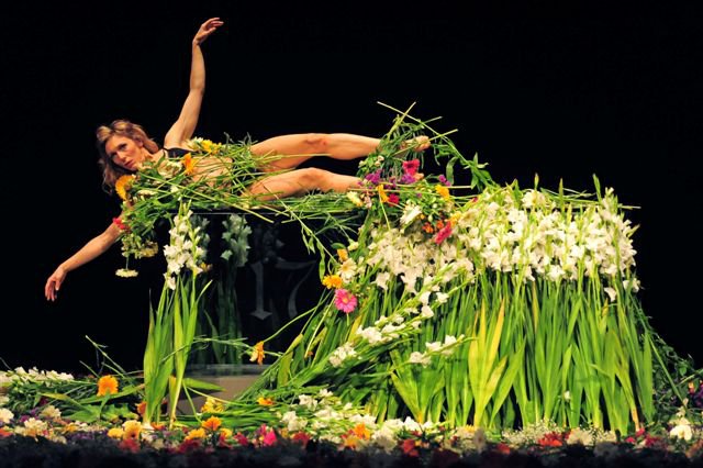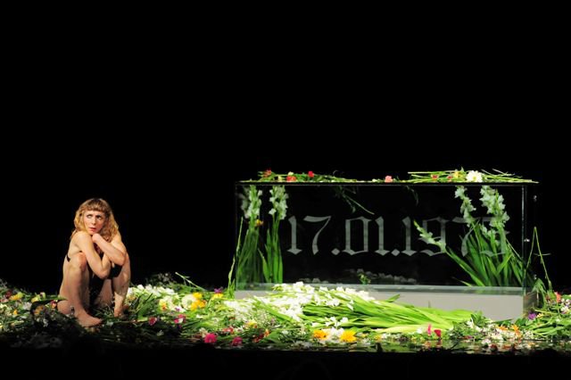 De un cerro de lilios, crisantemos, gladiolos y gerberas se asoman primero una mano, luego un brazo, después la cabeza y finalmente los pies desnudos de la bailarina Annabelle Chambon, quien en una particular resurrección al ritmo de la música emerge de una gran tumba transparente para interpretar Preparatio Mortis,la creacióndel belga Jan Fabre que reflexiona en torno a la existencia después de morir.