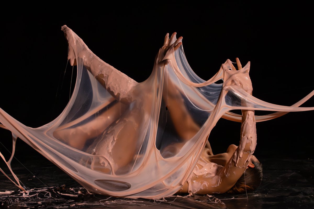 Tres performers llevan al escenario cuerpos con distintas materialidades: una con kilos de arcilla encima, otra con una goma viscosa gigante tipo slime y la última, cubierta de hebras que no sabemos si son pelos o algas secas. Todo, para abrirnos a mundos, criaturas y danzas de ciencia ficción, que según sus creadores no necesitan ser comprendidas racionalmente. "Una quimera es aquello que se propone como posible a la imaginación. Los cuerpos, acciones y danzas que se verán en escena son insuflados por historias obreras, ritos de muerte ancestrales, relatos populares de bestias y vegetación magallánicas, por el deseo de plantar una roca para verla crecer y por el anhelo de metamorfosis de un mundo que continúa y continúa, sin lograr morir ni nacer", enfatiza la directora.