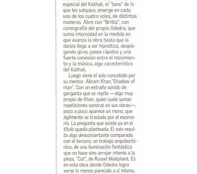 La obra estrenada el 2011 significó el debut de la Compañía de Aakash Odedra y lo situó como una de las figuras más prometedoras de la danza británica. “Un bello intérprete” y “un bailarín para seguir” son algunos de los comentarios que publicó entonces el diario inglés The Guardian.