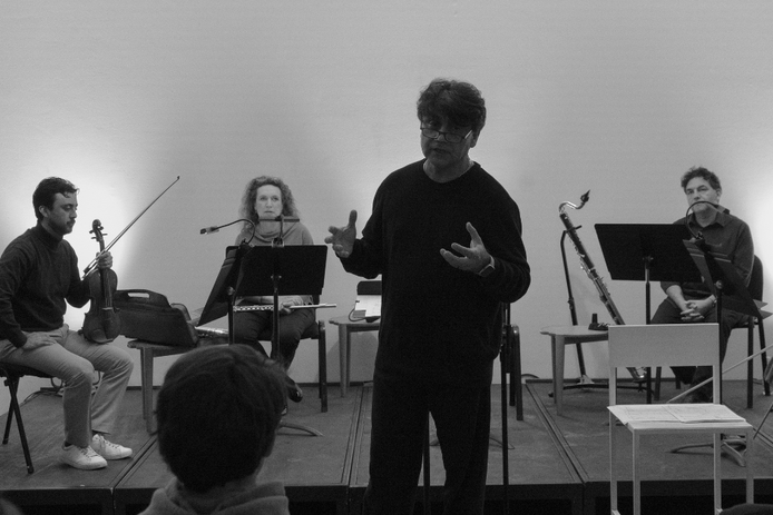Sobre el formato, el director afirma que es novedoso para todos los involucrados: “Para el ensamble es muy interesante, porque el músico no sólo se enfrenta a la partitura, hay otros elementos expresivos que intervienen en la puesta en escena, como las luces y todo lo visual. El intérprete se enfrenta también a un lenguaje nuevo y es llevado a un espacio distinto que es diseñado para teatro. Para el público es atractivo visualmente y con una sonoridad nueva. Además hay dos actores que también son protagonistas, personajes que actúan e interactúan con la música. Así es que es un formato súper interesante para el público, el compositor, el ensamble y estamos muy contentos que GAM haya tomado esta idea. Es un gran desafío”, concluye Aranda.