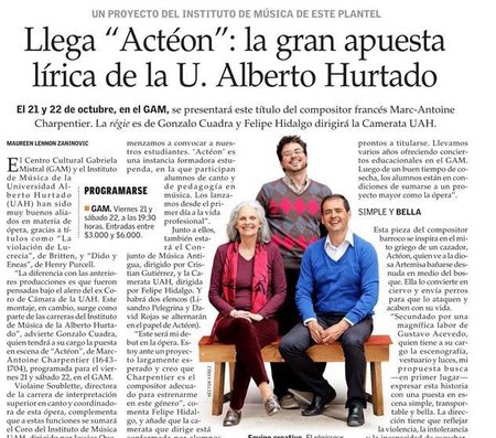 Moliere y Eurovisión, separados por tres siglos y unidos por un mismo compositor:Marc-Antoine Charpentier. En vida, creó música para la compañía de Moliere. Y muy lejos de entonces, terminó siendo el responsable de la música de apertura del festival Eurovisión. Ahora, Charpentier llega a GAM con Actéon a cargo del Instituto de Música Universidad Alberto Hurtado (UAH).