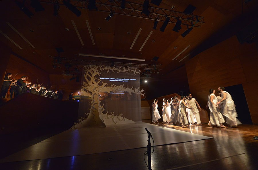 Acteón es interpretada por el coro del Instituto de Música UAH, dirigido por Jessica Quezada; el Conjunto de Música Antigua, dirigido por Cristian Gutiérrez; y la Camerata UAH, dirigida por Felipe Hidalgo. Los personajes principales están a cargo de dos elencos, con Lisandro Pelegrina y David Rojas como Actéon. La régie es de Gonzalo Cuadra, la puesta en escena de Gustavo Acevedo y la dirección general de Felipe Hidalgo.