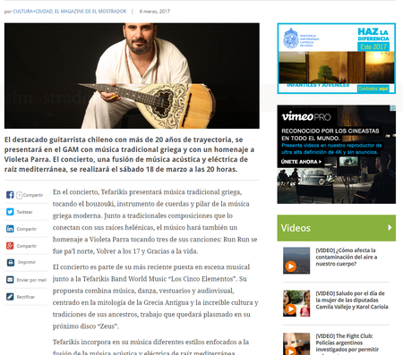 El concierto es parte de su más reciente puesta en escena musical junto a la Tefarikis Band World Music “Los Cinco Elementos”. Su propuesta combina música, danza, vestuarios y audiovisual, centrado en la mitología de la Grecia Antigua y la increíble cultura y tradiciones de sus ancestros, trabajo que quedará plasmado en su próximo disco “Zeus”.