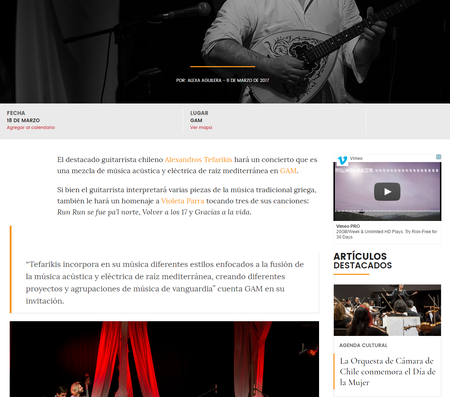 Concierto de Alexandros Tefarikis, destacado guitarrista chileno con más de 20 años de trayectoria.