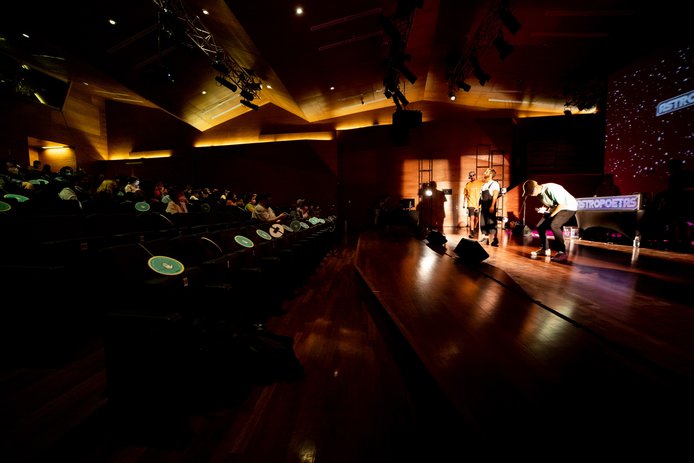 La banda de hip hop da un concierto ligeramente modificado para hacer más amable la experiencia a personas en situación de discapacidad cognitiva. Los actores y músicos “Flako Ibar” (Moisés Angulo), “Noco” (Nicolás Aguirre) y “E6” (Simón Leiva) interpretan completo su disco Palabras claves y sus EP Trilogía e Indoors, junto a Matías Escudero y Belén Fernández como artistas invitados.
