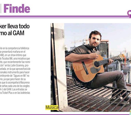 Tras recibir el Premio Pulsar 2015 como Artista Revelación y ser nominado el año pasado como Mejor Cantautor, el músico llega a Tocatas Mil para presentar un show que incluye canciones de sus dos discos, en los que fusiona sonidos que van desde la trova hasta el bossanova y el pop, y con los que ha seducido a la crítica especializada, que lo ha calificado como “una de las voces más originales y consistentes de la nueva cantautoría chilena”.