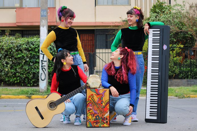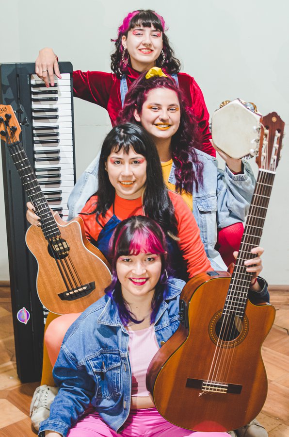 Pandero, cantora y compositora Cecilia Millaray | Piano, cantora y compositora Yorka Linzmayer | Bajo, cantora y compositora Amanda Fernández | Guitarra, cantora y compositora Helga Inostroza y Carla Villablanca