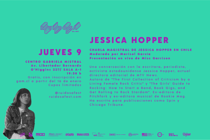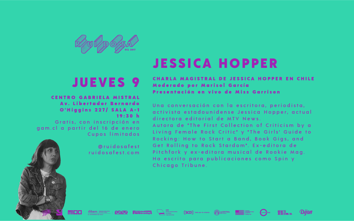 La autora periodista y activista, ex-editora Pitchfork, actual editora de MTV llega por primera vez a Chile en el marco del Ruidosa Fest y se presentará en un formato de conversación moderada por la periodista chilena Marisol García. Junto a la conversación se hará una breve presentación musical de la banda chilena Miss Garrison.