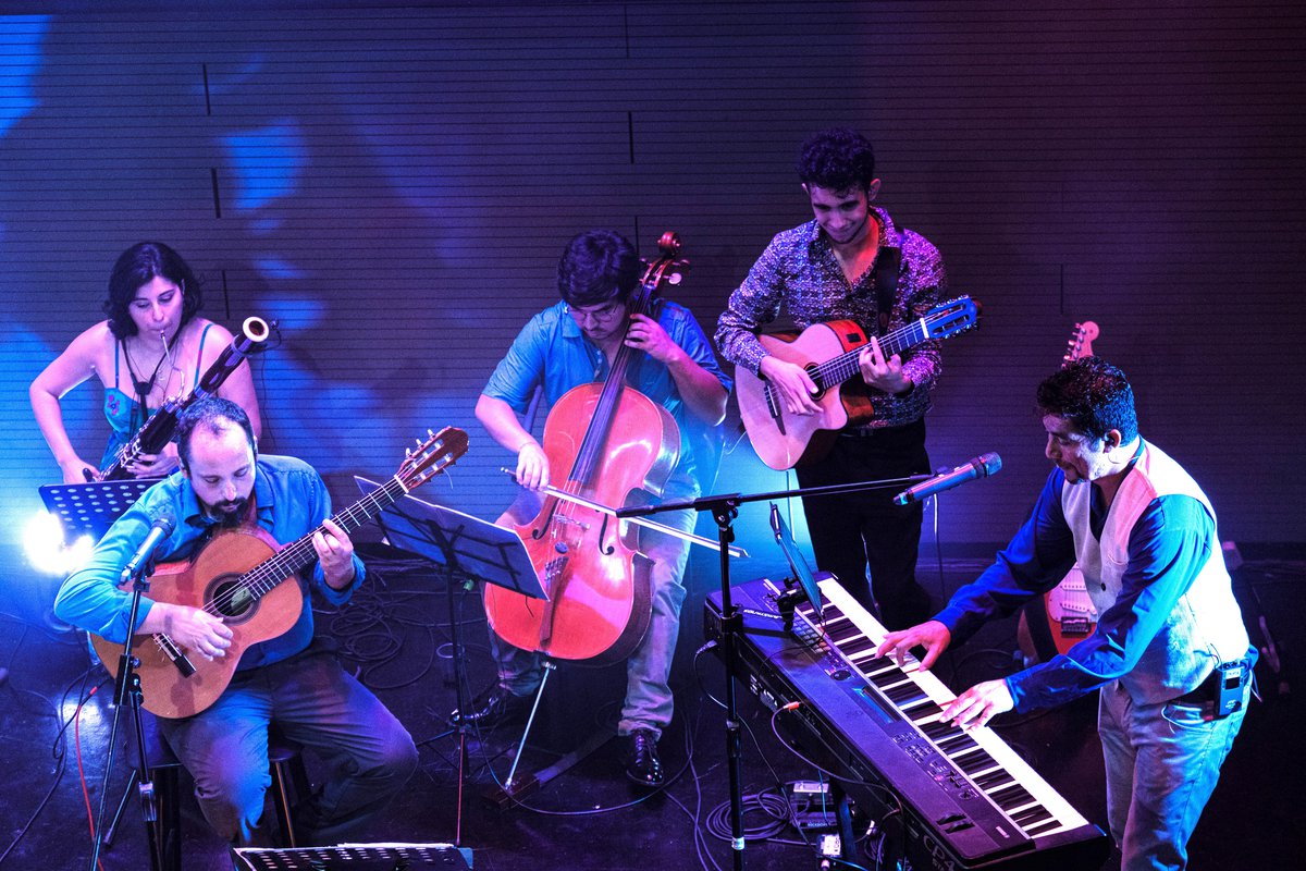 La agrupación se presenta por primera vez en GAM con su álbum “La cueca me cautivó”. Otorgando matices frescos a este género, el espectáculo combina música, poesía y visuales, con una nueva estética escénica para la música chilena de raíz.