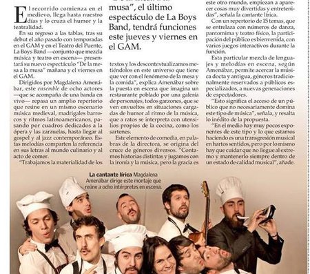 El nuevo concierto De la Mesa a la Musa, de la Compañía La Boys Band es un divertimento teatral inspirado en las posibilidades dramatúrgicas y lúdicas que brinda la música y los textos del repertorio vocal universal.
