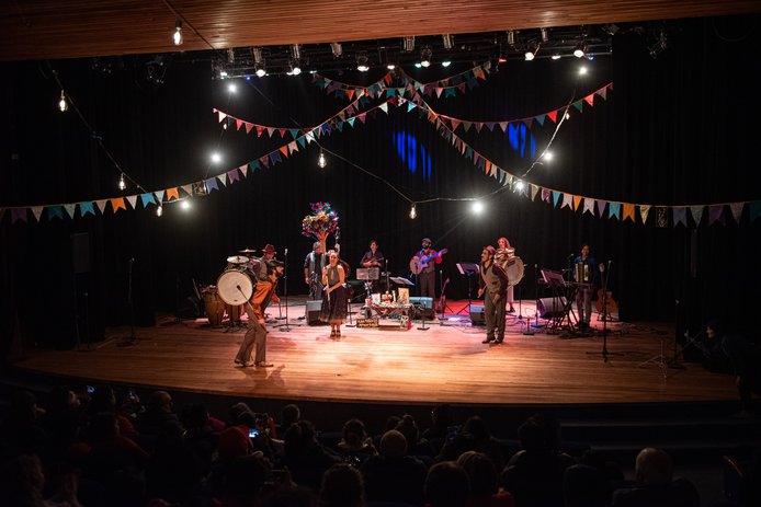Acordeonista Dominga Corral Sauterel | Multinstrumentista Gabriela Milla Guajardo | Violinista Danka Villanueva Bono | Bailarina Macarena Salinas Magnani | Contrabajista Rodrigo Ugarte Pavez | Guitarrista Edgard Ugarte Pavez | Percusionista Jorge Ganem Cortés | Chinchinero Marcelo Fuenzalida León | Chinchinero Pablo Vega Catrileo | Sonidista Pablo Contreras Mendoza.