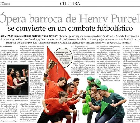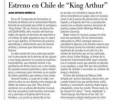 Estreno de la semiópera barroca de Henry Purcell, a cargo del Instituto de Música de la Universidad Alberto Hurtado. Con más de 50 músicos y cantantes.