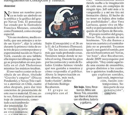 Con el saxofonista Dayna Stephens (USA) como invitado especial, Novas Trío presentará este disco que fue editado en septiembre de 2016 por Discos Pendiente (DPCD41) y apoyado por el fondo de fomento a la música Chilena.