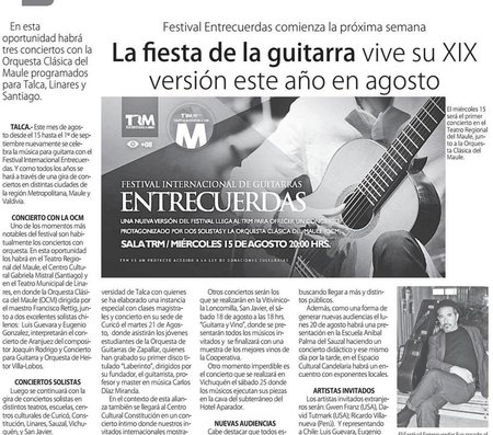 La Orquesta Clásica del Maule (OCM), vuelve a GAM en el marco de la versión 2018 del Festival Internacional de Guitarras Entrecuerdas.