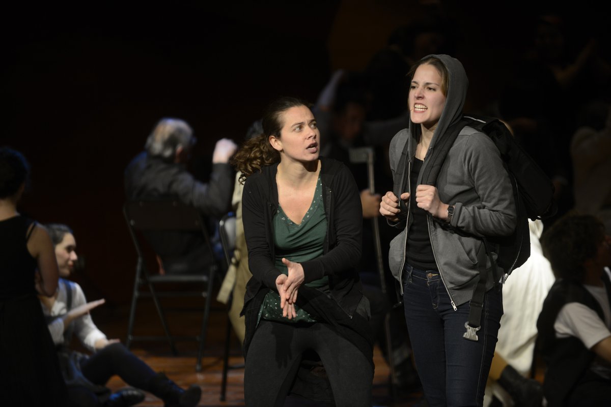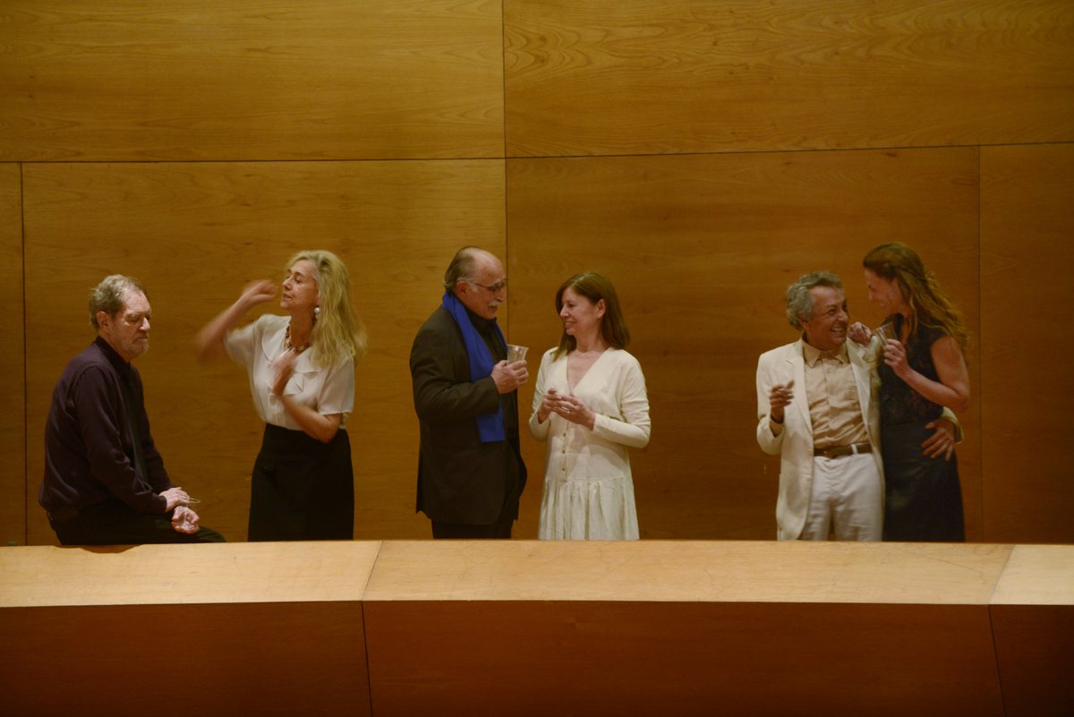 Un elenco encabezado por Alejandro Sieveking, Catalina Saavedra, Regildo Castro, Emilia Noguera, Alessandra Guerzoni, Ema Pinto (también directora vocal de la puesta), Grimanesa Jiménez, Norma Norma Ortíz, María Olga Matte, Cristina Aburto y Camila Hirane, componen Víctor sin Víctor Jara.