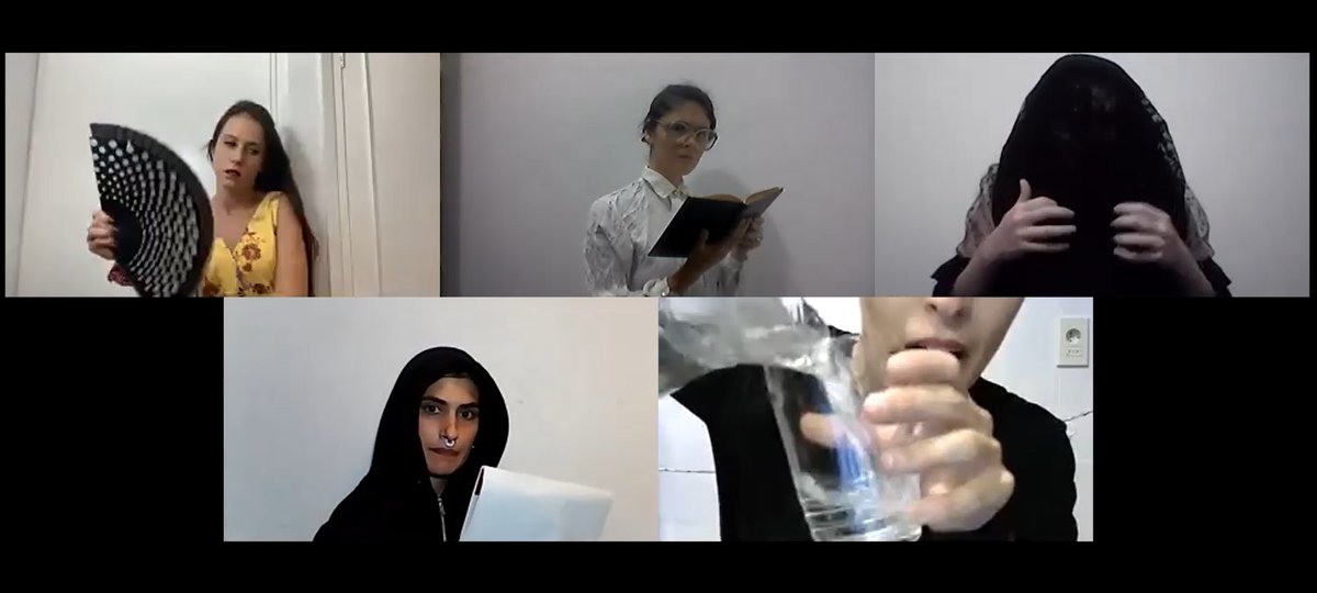 Cinco actrices uruguayas hacen una versión experimental-virtual en vivo por la plataforma Zoom de una obra clásica española: La Casa de Bernarda Alba de Federico García Lorca.