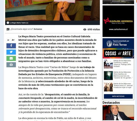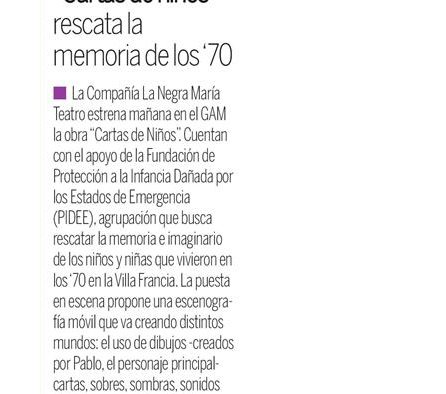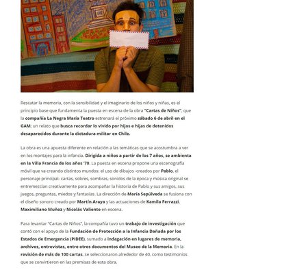 La compañía La Negra María Teatro buscó en documentales, libros, fotos, investigaciones, seminarios y más. Encontraron más de 100 cartas y seleccionaron cerca de 40. Ahí se sumergieron en la experiencia y en el significado racional y emocional que le daban los niños a su vida en dictadura, con sus padres detenidos o desaparecidos. A partir de eso crearon una historia que cuenta las vivencias y miradas de tres amigos, con sus creencias, juegos, recuerdos, fantasías y preguntas.