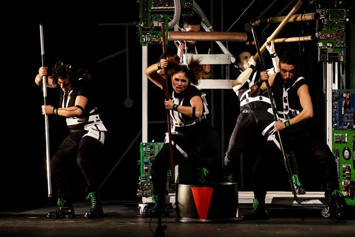 Dividido en 15 canciones, con ocho actores en escena y una escenografía compuesta de chatarra electrónica en desuso y objetos reutilizados, el espectáculo presenta diversas problemáticas en torno a la producción y consumo de productos (extracción de materias primas, obsolescencia programada, componentes tóxicos en pilas y baterías, relleno sanitario, quema de basura, entre otros).