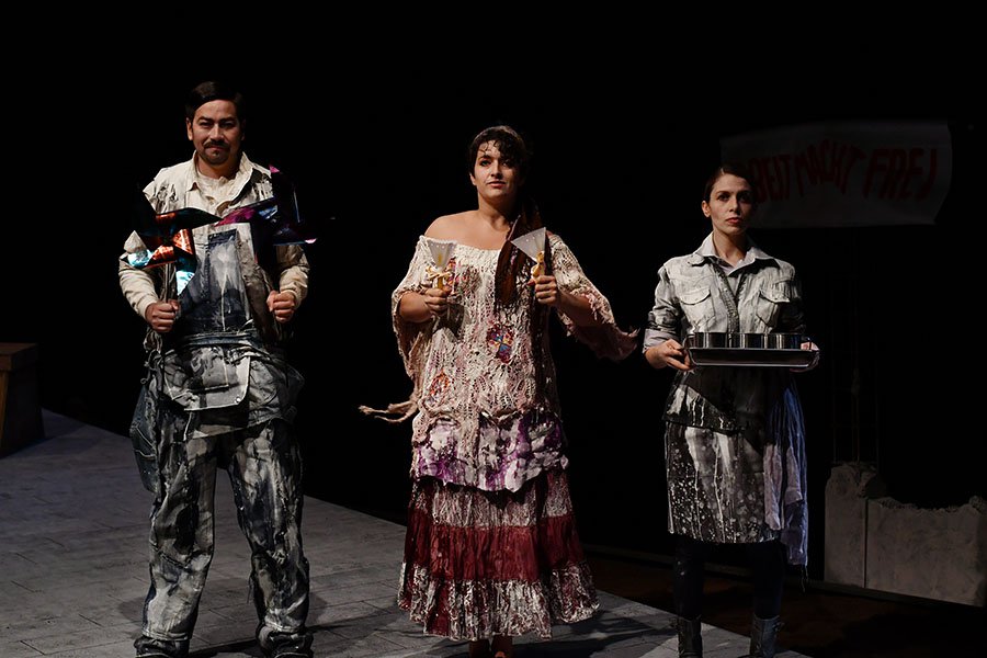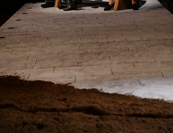 Escrita hace 10 años, la obra traza paralelos con Alemania para destacar la forma en que ellos se hicieron cargo de su memoria mientras nosotros no. La puesta en escena sitúa a los personajes en un memorial que se hunde, entre sonidos que remiten a la comunicación oficial de gobierno.