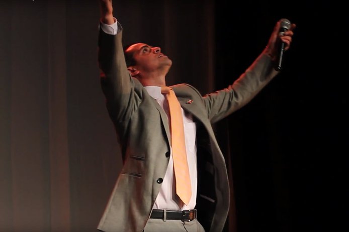 “La verdad de Dios está conmigo”, dice el pastor evangélico que interpreta Paolo Marisio. En escena se ve, se mueve y habla como uno. El teatro se transforma en un culto donde el pastor predica, vestido de traje, enérgico, subiendo la voz y los brazos al cielo. Así comienza A dios lo que es de dios, obra que llega desde Concepción a GAM, escrita por Jean Chatnez y dirigida por Aguilera Justiniano.