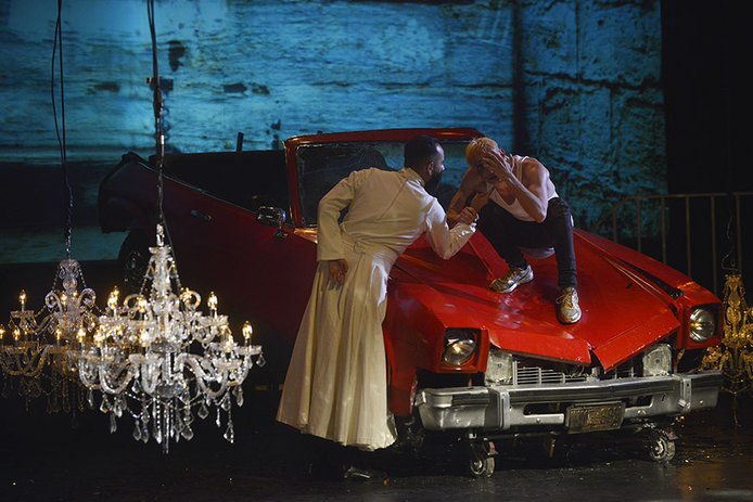 Incesto, suicidio, violación, castración y parricidio. Todo ocurre a la vista del público y salpica a los personajes e instituciones que quedan devastadas en la obra. “Hoy el acceso al consumo de violencia y pornografía está al alcance de un click. No es algo que debería perturbar. Creo que la mayor crueldad, provocación y violencia está puesta en la manera como retrata las relaciones humanas. En cómo cuestiona, desde un escepticismo y una desesperanza absoluta, los vínculos más profundos que un ser humano puede sentir”, dice el director Francisco Krebs (Déjate perder, Santiago High Tech).