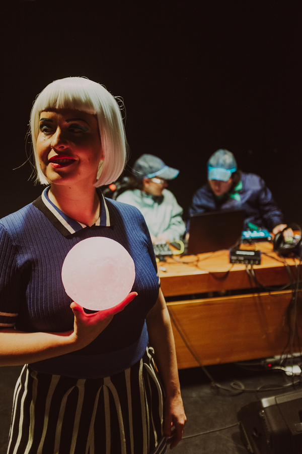 La obra transcurre en un espacio escénico que representa una pequeña y única fracción de nuestra galaxia. En un formato de monólogo, una actriz y una diseñadora sonora crearán y ejecutarán en vivo el universo audible, develando los mecanismos sonoros que hacen posible traer a un lugar del planeta tierra, una historia de cuerpos celestes.