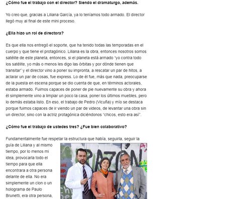 Dramaturgia, dirección y escenografía Manuel CalzadaElenco Liliana García Sosa, Pedro Vicuña y Víctor Montero