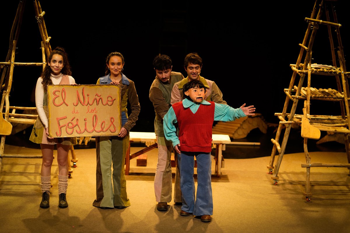 El niño de los fósiles nos sumerge en la vida escolar de este niño de diez años a través de marionetas, principalmente de la técnica del marote: muñecos híbridos a escala humana.